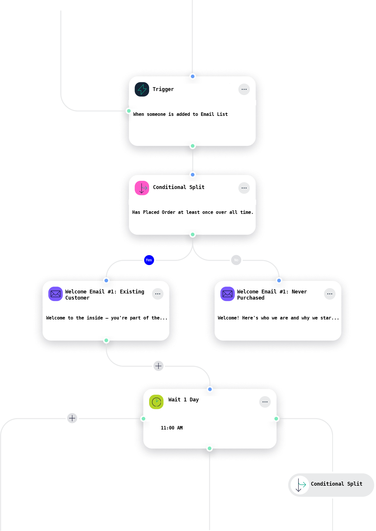 We build 6-8 automated flows: Welcome Series, Abandoned Cart, Browse Abandonment, Post-Purchase, Reorder, Win-Back, and Sunset. Smart segmentation by purchase history, engagement tiers, and lifecycle stage.
